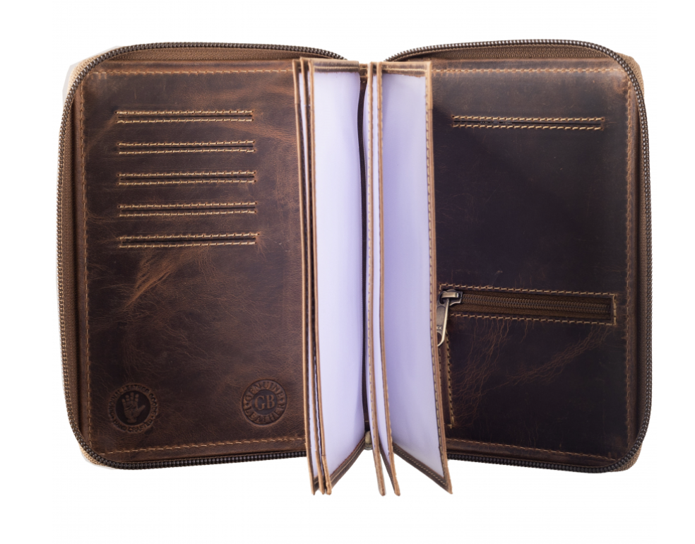 - Vintage-Leder Ausweismappe mit Reißverschluss Hirschkopf-Motiv, braun, unisex