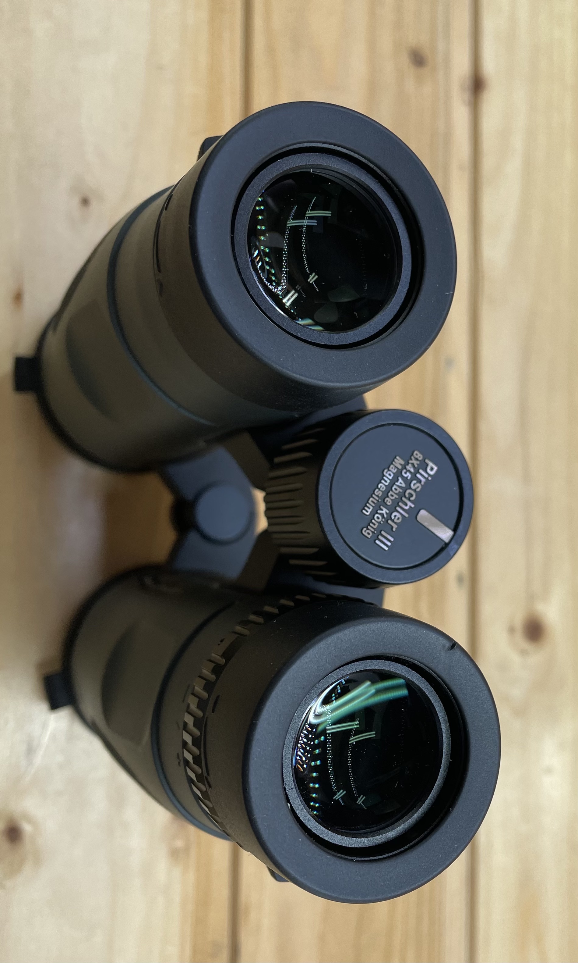 Zum anderen zeichnet sich das „Pirschler“--Fernglas im Vergleich zu anderen Ferngläsern dieser Klasse durch einen größeren Abstand der Austrittspupille aus (20 mm).