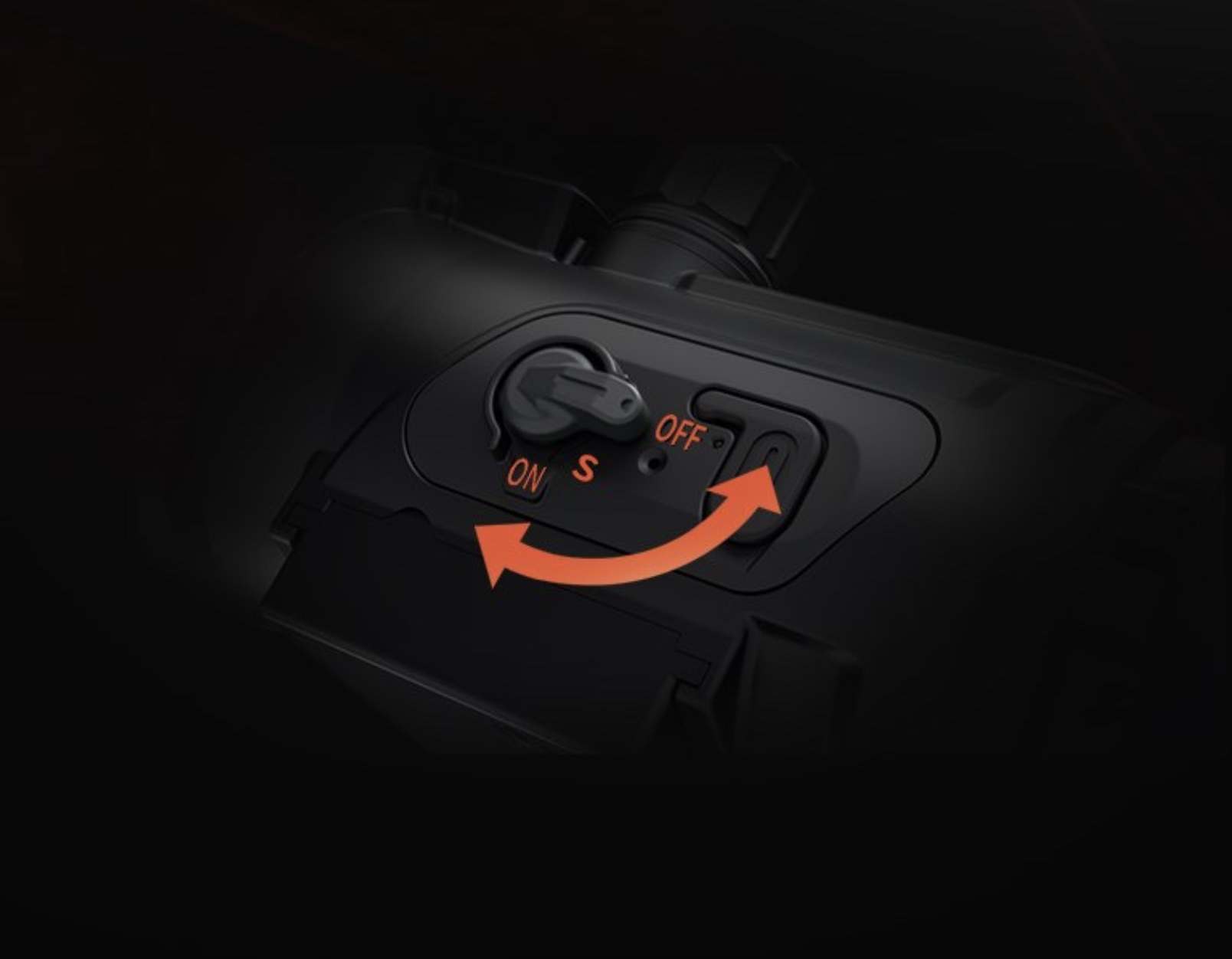 Ein physischer Kippschalter richtet sich an herkömmliche Jagdpräferenzen, verbessert den Komfort und zeigt den Gerätestatus zwischen Ein-, Aus- und Standby deutlich an.