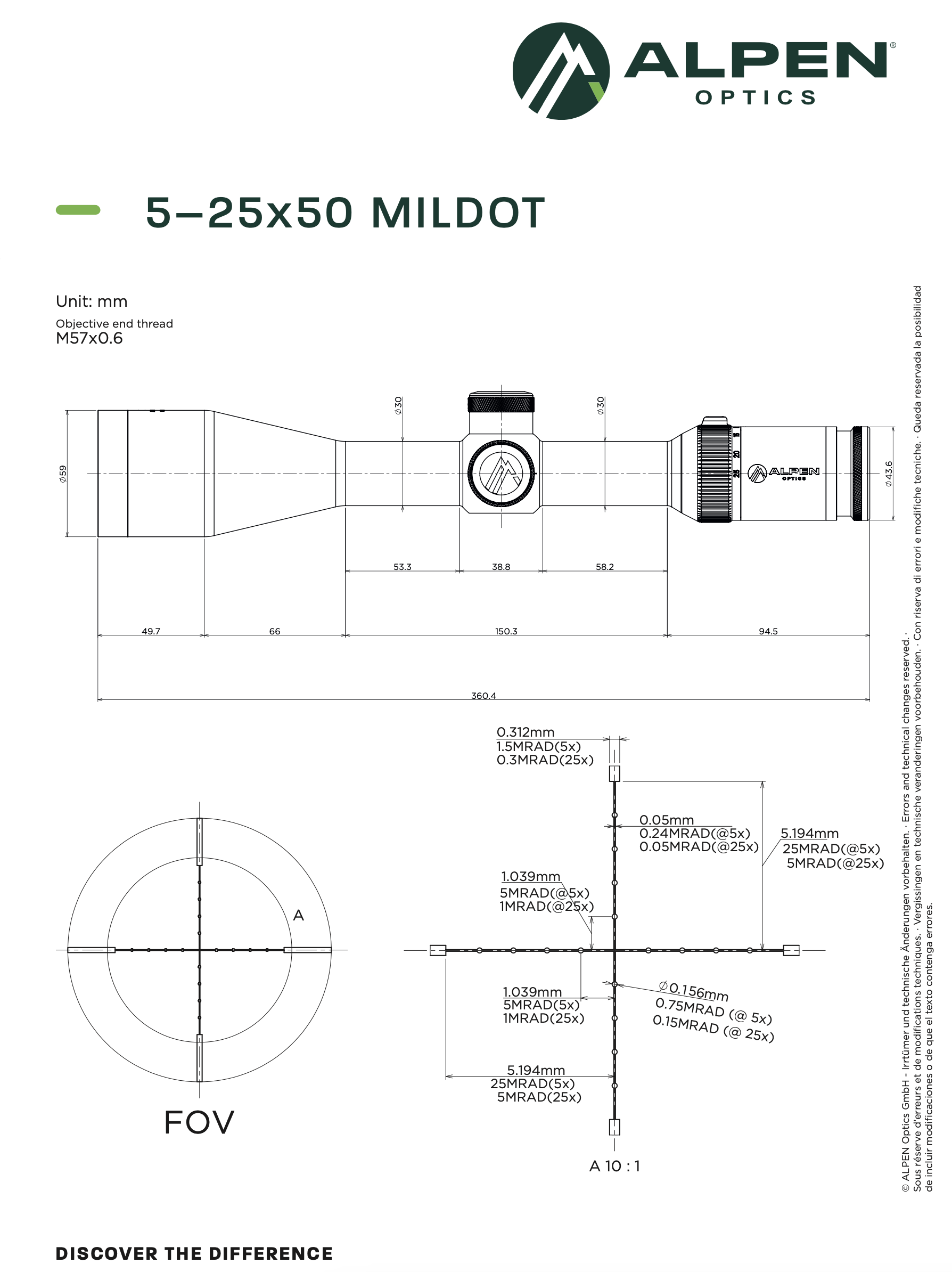 ALPEN OPTICS Apex XP Zielfernrohr 5–25x50 MilDot mit SmartDot Technology