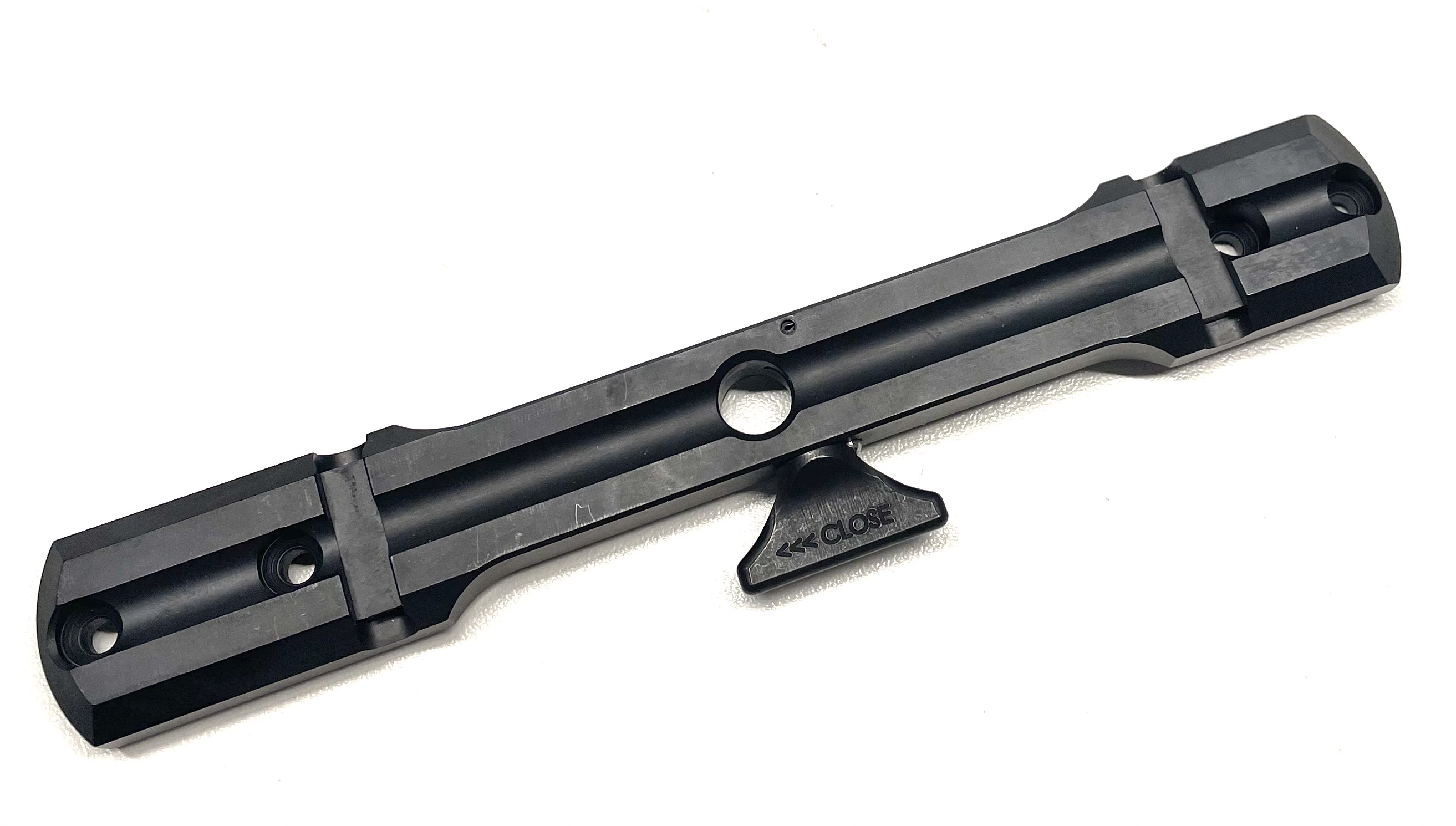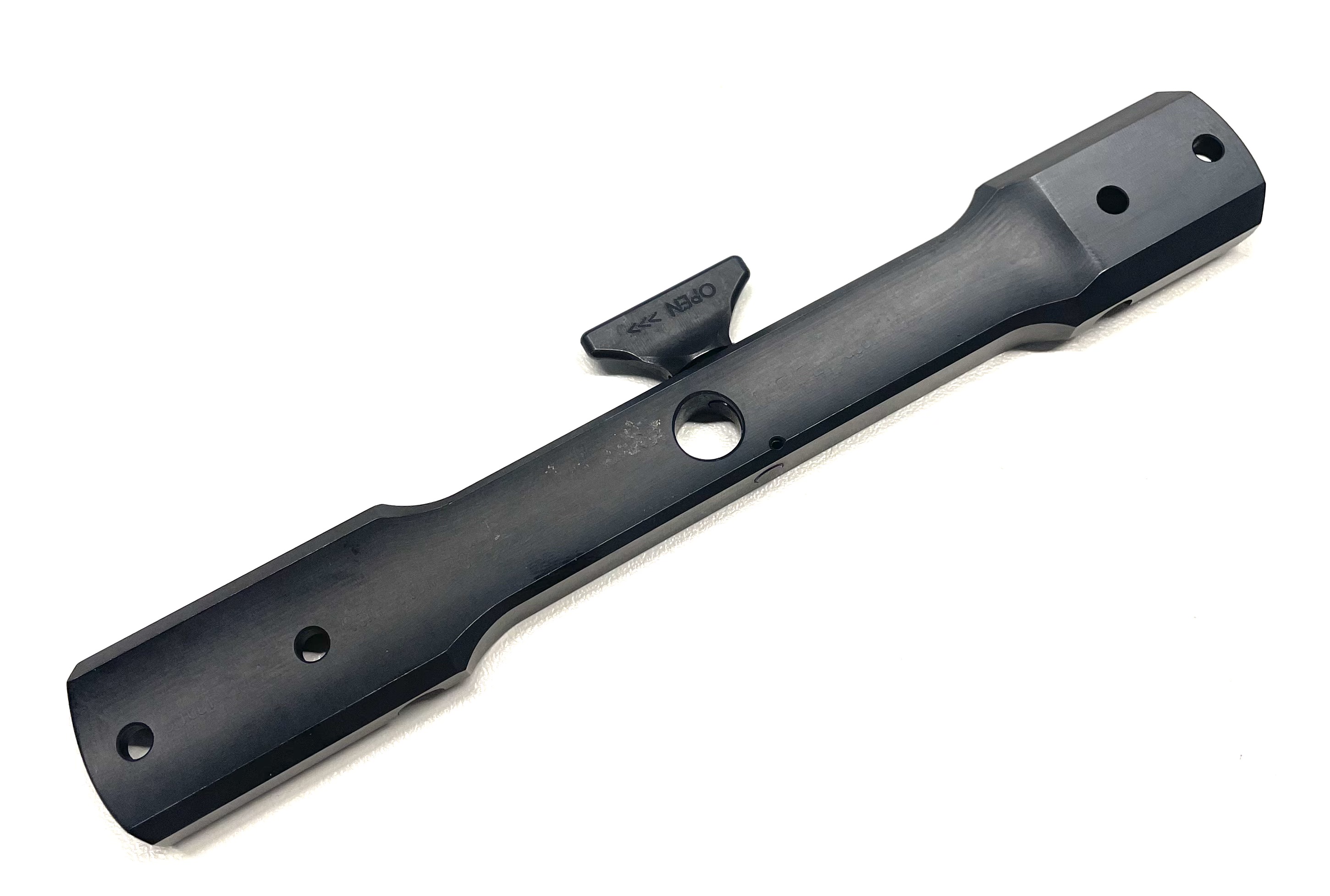 Die Grundschiene ist aus hochvergütetem Werkzeugstahl gefertigt und wird durch unsere Oberflächenbehandlung beständig vor Korrosion geschützt sowie optisch veredelt. Die bestehende Modellpalette ist an der Unterseite jeweils auf die spezifische Basküle oder die vorliegende Systemhülse ausgelegt und wird ohne Änderung an der Jagdwaffe entweder geklemmt oder geschraubt. Der innovative Mechanismus des Klemmhebels justiert über eine Zug- und Schubbewegung die zugehörige Montageschiene BASIS in die vordere Rückstoß- sowie die hintere Positionierungsnut und gewährleistet damit absolute Wiederholgenauigkeit für ein gleichbleibendes Schussbild.