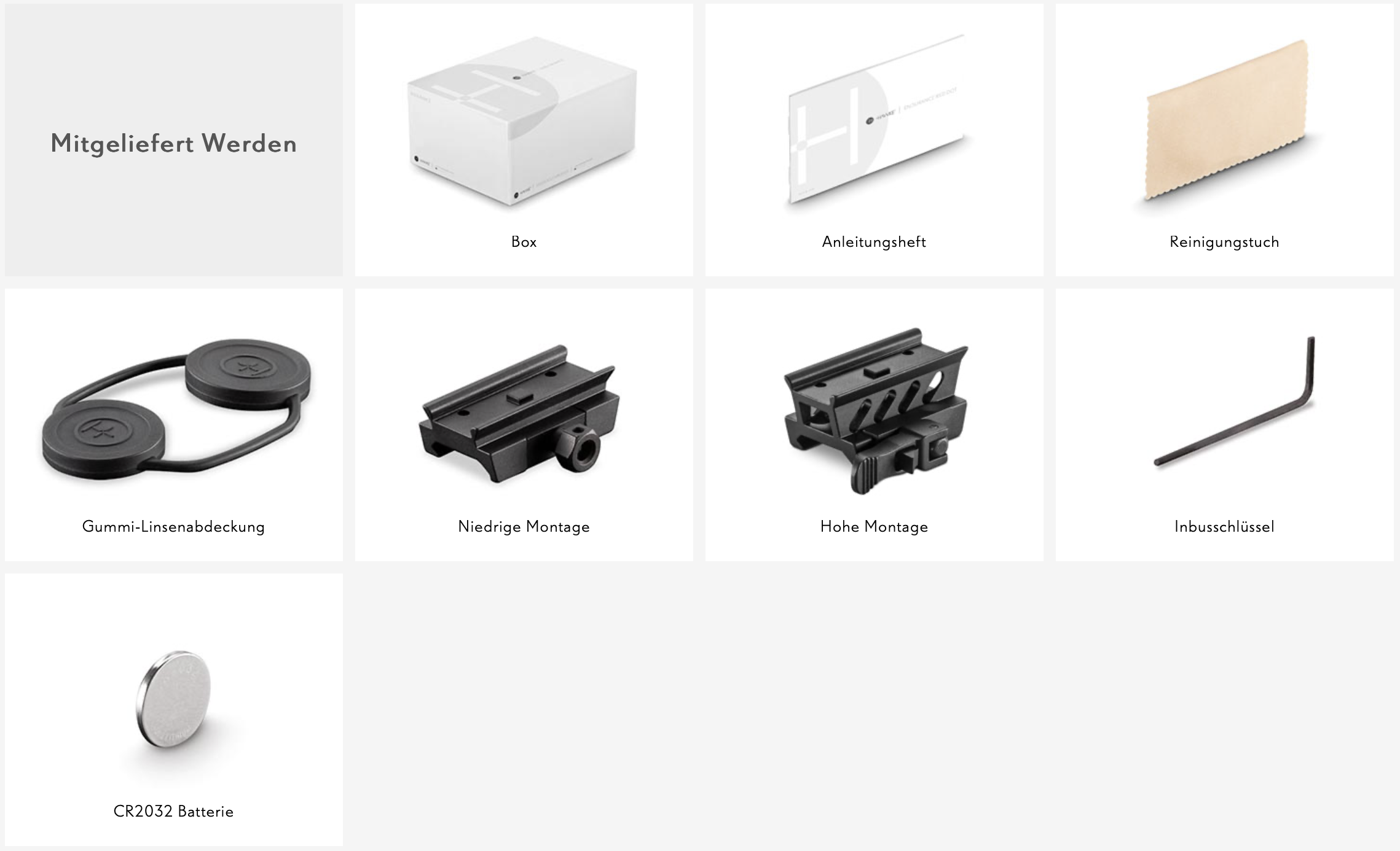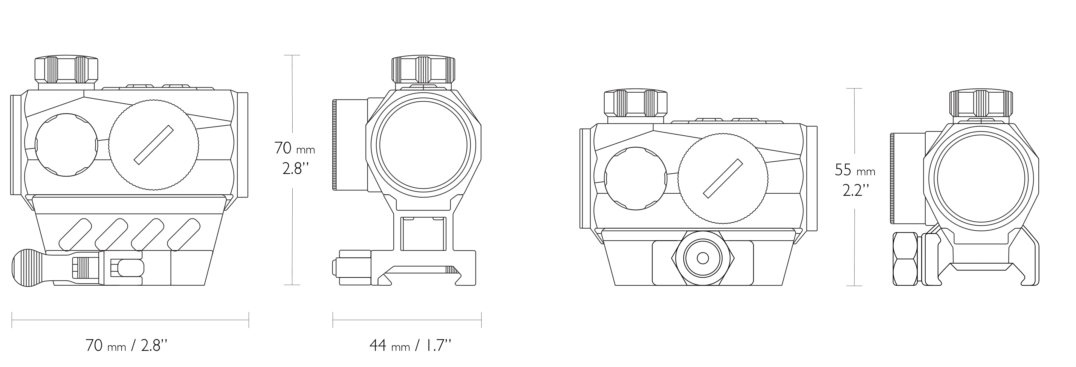 Die mitgelieferte flache Weaver/Picatinny-Montage ist ideal für Jagdgewehre und Schrotflinten, während die hohe Montage mit Schnellverschluss eine klassische, absolut kompatible Montage auf AR-15-Gewehren und ähnlichen Plattformen ermöglicht. Die 25-mm-Objektivlinse ist perfekt für ein leichtes und schnelles System.